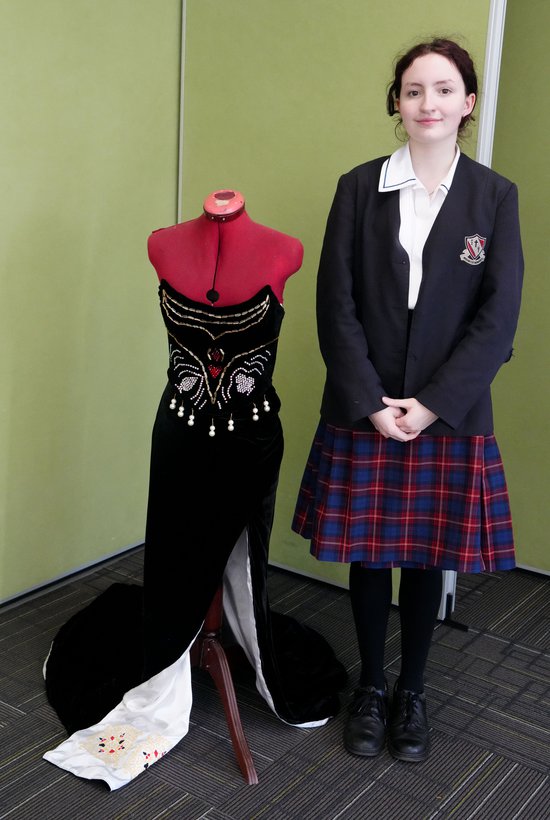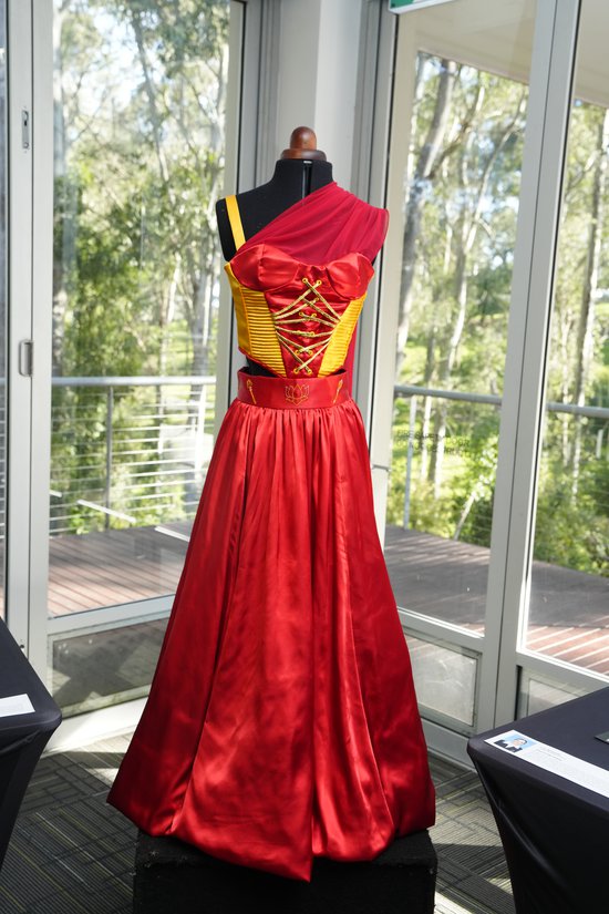 My Major Project is a red carpet/performance dress. The inspirations behind my dress include Jessica Rabbit (from the movie Who framed Roger Rabbit), gambling, casinos and opulent luxury environments. The dress is designed specifically for minimal movement. It includes some hidden features like embroidery in the lining of the skirt and on the back of the bodice. The bow hides a pouch to store excess ribbon so it will not have to be cut off.
