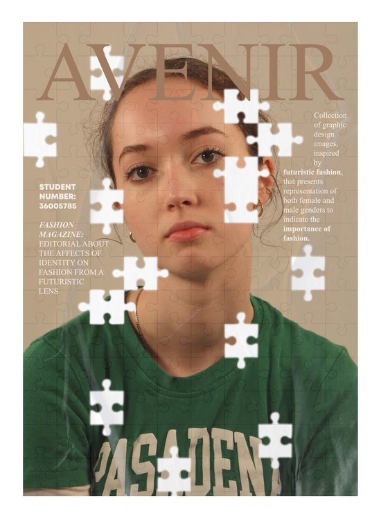 My Multimedia Project, ‘Avenir’ is a fashion magazine inspired by futurism, consequently becoming unique and innovative in nature, ultimately defying reality. I also created a promotional video, that replicated the images and manipulations present throughout my magazine. Ultimately, both pieces create an innovative and futuristic design, that is unique, and extremely modern for a contemporary audience. Furthermore, my project captures a vast range of images, both of male and female subjects, ultimately representing two genders within the one medium, defying the normality defined within magazines such as Vogue, or GQ, where they focus on just one gender.